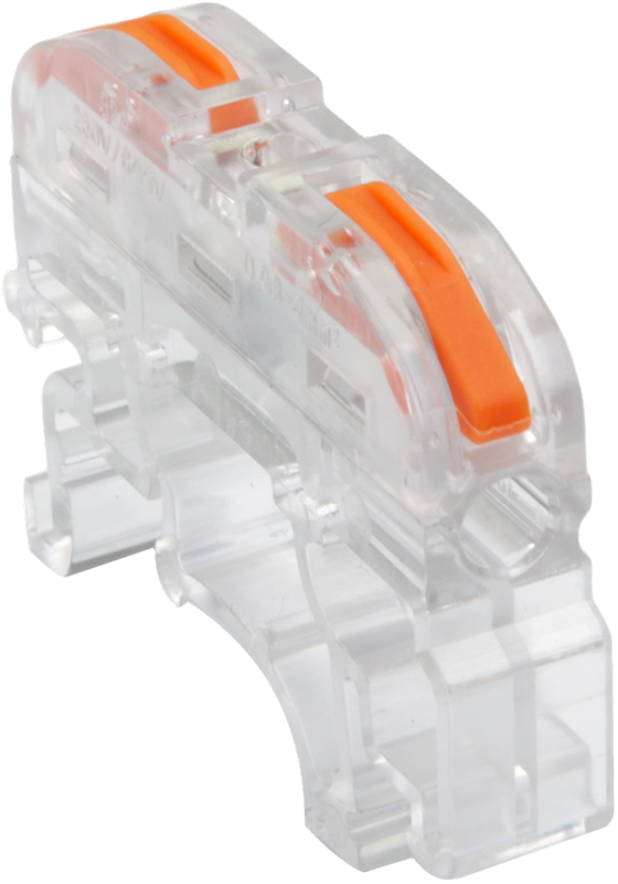 Csavar nélküli vezetékösszekötő, toldó, nyitható, átlátszó